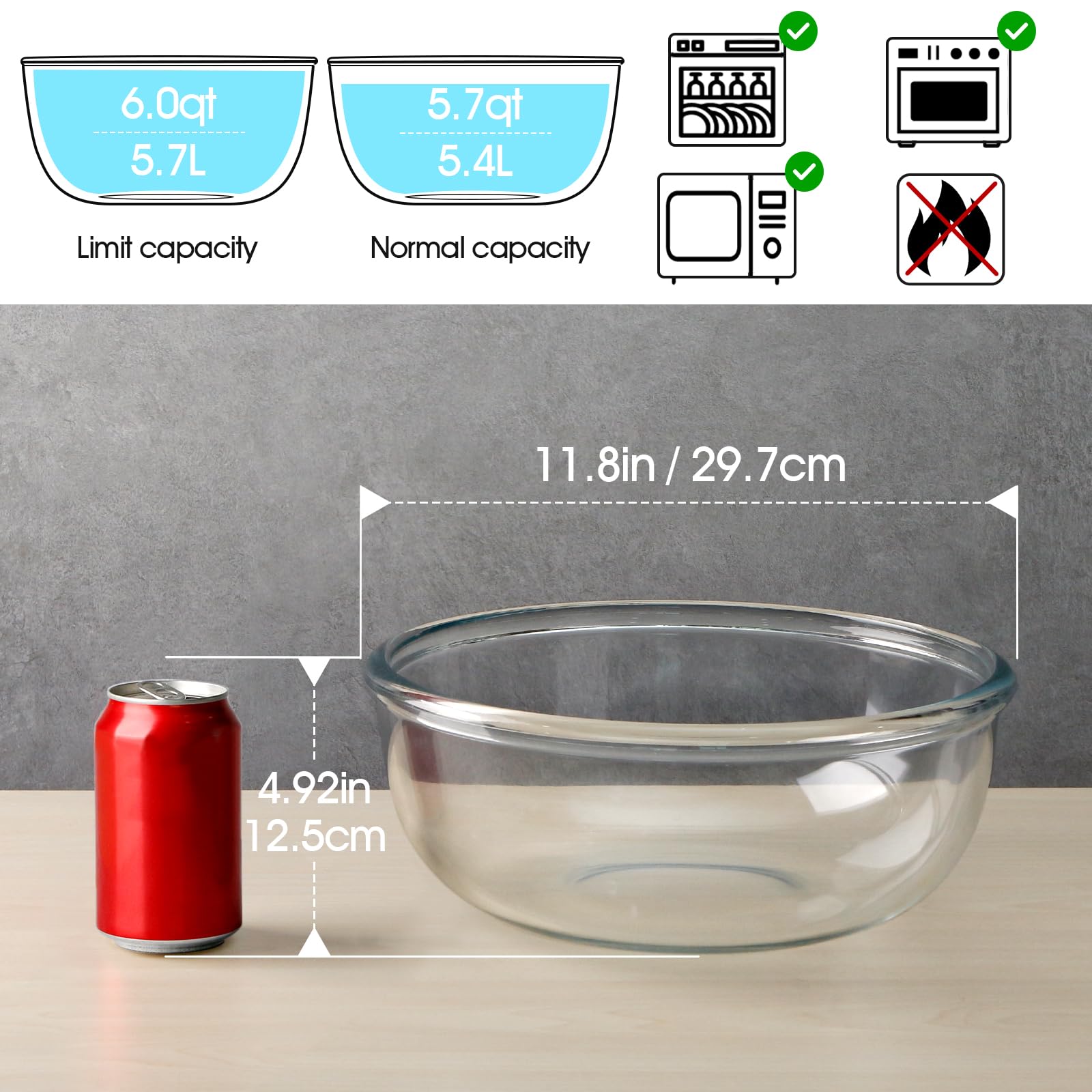 - 【High borosilicate glass material】: The NUTRIUPS 6 quart large glass mixing bowl, made of high borosilicate glass, ensures durability, sturdiness, and resistance to high temperatures, making it perfect for both hot and cold dishes