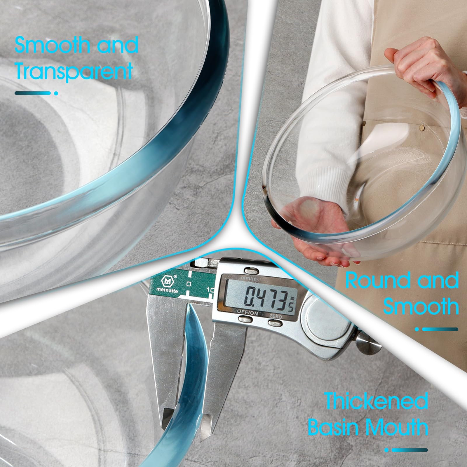 - 【Easy to clean】: With its smooth surface, this clear mixing bowl is extremely easy to clean. Simply rinse it under running water or put it in the dishwasher for a quick and convenient clean up after use