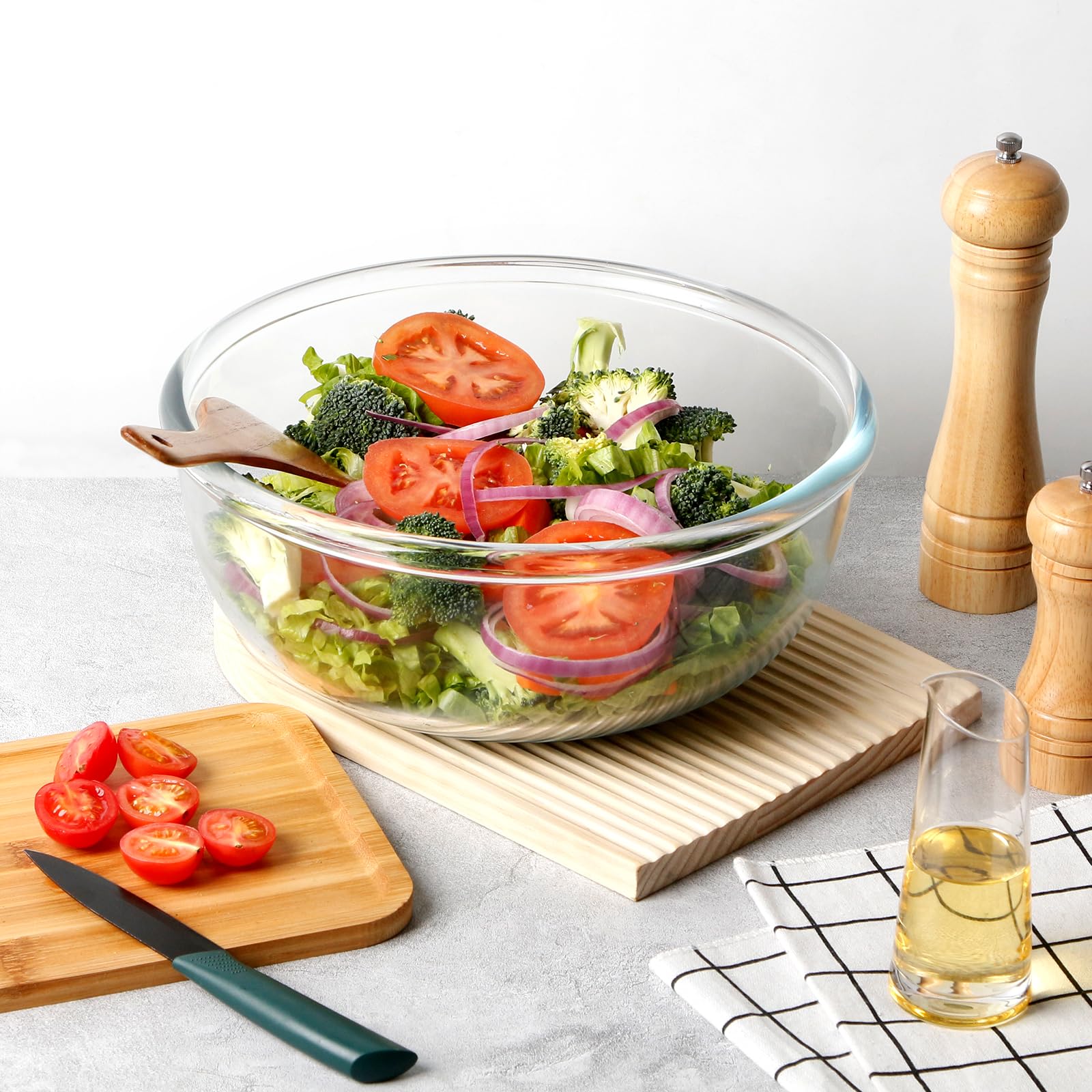 - 【Versatile】: Not only is this glass mixing bowl perfect for making and serving salads, but it is also oven and microwave safe. You can use it to bake delicious cakes or heat up your favorite dishes without worrying about damaging the bowl